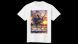 釣り人なら誰もが憧れる、夕日に照らされたカジキの美しい帆(背びれ)と躍動感あふれる姿の息を呑むようなエキサイティングな瞬間を、色鮮やかなフルカラーグラフィックでTシャツに落とし込みました。