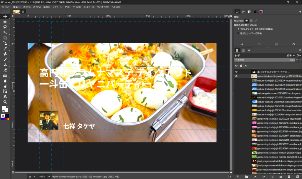 GIMPをPhotoGIMPにてフォトショップ風にした後のアイキャッチ画像作成キャプチャー